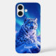 Add a supernatural touch to your phone with this phone case, which features a majestic snow leopard with piercing blue eyes, its fur adorned with intricate patterns of frost and ice, as it perches atop a snow-capped mountain outcropping that's backlit by the setting sun and the aurora borealis. Personalise with a name!