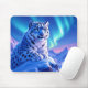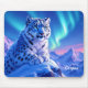 Add a supernatural touch to your computing experience with this mousepad, which features a majestic snow leopard with piercing blue eyes, its fur adorned with intricate patterns of frost and ice, as it perches atop a snow-capped mountain outcropping that's backlit by the setting sun and the aurora borealis. Personalise with a name!