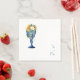 Sunflower floral and stemmed glass wedding cocktail napkin. Stunning. Cobalt blue text.