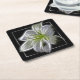 Stunning White Lily Fractal Art Black Square Paper Coaster