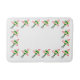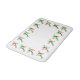 Beautiful flowers all around the border of this bathroom floor mat. The flowers are green and red in the form of a bouquet.