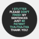Stutter Stuttering Awareness Please Don't Finish M Classic Round Sticker