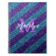 stylish blue and purple glitter monogram name notebook ,blue purple glitter sparkle monogram name notebook. elegant and sparkly feminine design with a personalized name and initial ,perfect as gift for occasions and holiday