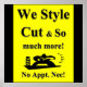 Something for everyone offers customised personalised haircut sale poster especially designed to promote and market your business. This uniquely designed haircut sale poster will not only bring a smile to your clients but they will also enjoy telling their friends about it. As a licensed cosmetologist I know firsthand the importance of promoting a salon, therefore it is wise to continuously change and market your shop as your clients’ needs increase. Happy promoting everyone…Good luck!