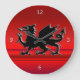 Stylised Black Welsh Dragon on red metallic effect Large Clock