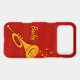 A red and gold stylised brass trumpet musical instrument personalised iphone case. Personalise this item with your name. This example reads Bailey. A perfect gift for brass instrument players.
