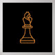 This captivating vector illustration features a stylised chess queen with a regal woman's head and adorned in a flowing robe. The chess piece is set against a black background, with its elegant outline highlighted in a striking bright orange, creating a bold contrast. The design captures the power and grace of the queen in chess, symbolising strength, wisdom, and leadership. Perfect for chess lovers and fans of unique, artistic interpretations of classic game pieces.