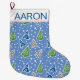 Stylised Christmas trees pattern blue and name Large Christmas Stocking