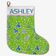 Stylised Christmas trees pattern lime green, name Large Christmas Stocking