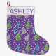 Stylised Christmas trees pattern purple and name Large Christmas Stocking