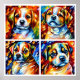 This is a cute poster perfect for a dog lover featuring 4 adorable stylised puppies in vibrant colours.