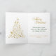Beautiful Christmas greeting card done in a rich dark green on green patterned background. Elegant graphics of a gold tone stylised Christmas tree, with a big golden bow, on top, decorates the green background. Gold tone fancy graphic text reads Merry Christmas, on the inside, along with green and golden yellow custom text ready for you to personalise. Lovely holiday greeting card sure to delight the receivers.