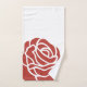 The stylised red rose on white bath towel set is part of the Red Roses Bathroom collection. For customisation assistance or to discuss a custom design, contact https://t.me/KBMD3signs_chat.