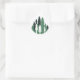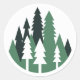 A circular design features an array of coniferous trees in different heights and green shades, emphasizing the diversity of forest ecosystems.