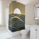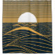 Stylised sun-moon, dark sea illustration. shower curtain