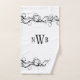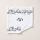 Make a splash with a completely unique Bath Towel Set that features a swirly border design with your monogram in the centre. You can also add colour to the white area if desired.