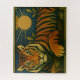 Celebrate the quiet power of nature with this striking wildlife art print featuring a stylised tiger reclining on a log beneath a radiant sun. Rendered in bold geometric lines and a rich palette of orange, gold, and deep blue, the tiger’s calm gaze and poised posture evoke themes of strength, tranquillity, and timeless presence. Surrounded by lush green leaves and framed with decorative patterns, the composition blends natural elegance with symbolic design. Perfect for eclectic interiors, nature-inspired decor, or as a meaningful gift for animal lovers and art enthusiasts, this piece brings warmth, balance, and bold beauty to any space.