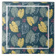 Stylised yellow and sage-green tropical leaves ceramic tile