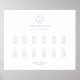 This twelve table horizontal seating chart sets a welcoming, elegant and celebratory tone for arriving guests. Elegant and chic with floral couple monogram with text in dusty blue against a white background. Personalise this seating chart to make it your own.