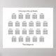 Stylish 22 Table Wedding Seating Chart Poster, please personalise the names of the couple and the names of the guests along with any of the other text that you may wish to personalise. A simple minimalistic poster featuring modern black text in a stylish layout on an elegant white background.