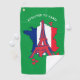 This is a stylish green patriotic ADDICTED TO PARIS Monogram Golf Towel, with the map outline of France in the TRICOLORE flag of FRANCE. Curved at the top, the text reads ADDICTED TO PARIS. Taking pride of place is a graphic of the Eiffel Tower (Tour Eiffel) and there are groups of red hearts. The curved heading on this patriotic Paris Lover Golf Towel is CUSTOMIZABLE, so you can replace with your own preferred greeting or delete. There is also a CUSTOMIZABLE MONOGRAM in the bottom right hand corner. You can choose the background colour of this Parisian Golf Towel you prefer from the options available.