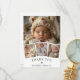 The front features a stunning collage with your favourite baby photos framed in a sleek, thin white border for a clean and sophisticated look. A larger, main photo of your baby sits at the centre, surrounded by three smaller snapshots below, creating a lovely, layered effect.
