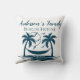 A stylish and lovely custom beach house throw pillow / cushion for you home. Design is of 2 blue Palm trees and a Hammock, sea and birds. A beautiful personalised island home decor for your coastal themed cottage or guest house. All text can be customised then personalise with the family name and date.