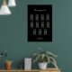 Help your guests find their table with this stylish black seating chart. It is suitable for a wedding with 11 tables and 110 guests.