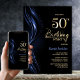 Invite your friends and loved ones to your 50th birthday with this stylish black and blue birthday party invitation. The customisable text area in this invitation template allows you to effortlessly include all the necessary details for your special birthday celebration, including the date, time, venue, and RSVP information. A variety of paper types and corner styles are available for your unique invitations, along with the option to download if you prefer a digital format.