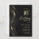 Invite your friends and loved ones to your 16th birthday with this stylish black and gold birthday party invitation. The customisable text area in this invitation template allows you to effortlessly include all the necessary details for your special birthday celebration, including the date, time, venue, and RSVP information. A variety of paper types and corner styles are available for your unique invitations, along with the option to download if you prefer a digital format.