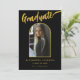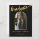 Celebrate Your Daughter’s College Graduation with a Beautiful minimalist graduate photo arch black and gold elegant script Announcement Card. Mark your daughter’s graduation with this Modern Script Calligraphy Graduation Photo Announcement Card, designed to capture the spirit of the occasion. Featuring elegant gold calligraphy script on a striking black background and an elegant arch template for your graduate photo, this card exudes style and charm. The front showcases the word graduate in stunning gold calligraphy script your daughter’s name and graduation details in gold modern typography on a black background, while the back highlights additional information in modern gold typography.
