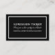 Stylish Black and White, Admission Ticket Cards by The Business Card Store. Great for all kinds of parties and events. Weddings, Concerts, Proms, Bars, Clubs e.t.c.