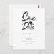 This minimalist black and white save the date card features a stylish etched save the date above your details set in elegant text.