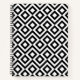 Stylish custom notebook features a bold black and white geometric pattern. White meanders angle around black diamonds containing white diamonds. Black zigzags provide subtle separation between the winding paths. You can change the inside paper design to suit your needs (wide ruled, college ruled, graph, sketch, recipe, and others) in the sidebar.