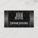Make a lasting impression with this elegant business card design featuring shimmery black and white gradient borders and monogram pattern on a black background.