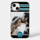 Stylish Black Blue Striped Monogram Custom Photo Case-Mate iPhone Case