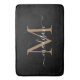 Modern Black Gold White Monogram Script Elegant Girly Bath Mat