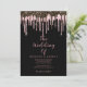 Luxury stylish black, and rose gold glam glitter drips with a modern script elegant wedding invitation. This exquisite stylish dazzling geometrical trendy design is perfect for the smart and sleek girl or anyone. Customise this design with your own message and personalised information. All designs are printed.