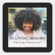 A simple yet elegant funeral stickers personalized with your favorite photograph of your loved one and typography that reads 'In loving memory', and their name. These stickers are a great tribute for friends and family as a keepsake and can be worn at their funeral or wake.