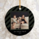 Stylish Black Stripe Simple Photo Christmas Ceramic Ornament