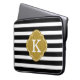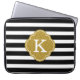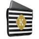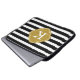 Stylish Black Stripes Gold Monogram Laptop Sleeve