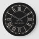 Elegant, stylish, vintage wall clock with Roman numerals on a black background. Personalise with your family name.