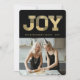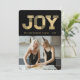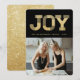 Classy Stylish JOY Typography Block Faux Gold Glitter On Black, Modern Holiday Photo Card.