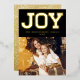 Classy And Stylish 'JOY' Typography Block Faux Gold Glitter On Black, Modern REAL Foil Pressed Holiday Photo Card.