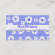 Pretty play date / mummy card, with graphics of a white stencil like daisies against a periwinkle blue background, with dark blue polka dots. A white band, across the middle, has matching blue custom text. Personalise the text with what ever you want it to say. Great for arranging play dates, parties, and sleep overs.