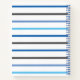 Clean and Modern striped notebook in shades of blue, black and white with a minimalist design. Personalised with your name in a a blue script. You can change the name by clicking on the personalise button. Change 'inside paper design' on the right of the image, choose from lined paper, bullet, sketch, graph, recipe, checklist and more. Makes a lovely classy back to school notebook and will make a perfect birthday gift.