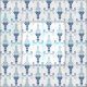 A stylish and elegant pattern fabric with art deco floral print in blue shades.