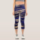 Stylish Blue Gold Abstract Marble Capri Leggings