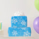 Stylish and modern festive pattern featuring a blue background and elegant, white snowflakes. The clean, geometric snowflake design brings a touch of winter charm, adding sophistication and a festive flair. Perfect for wrapping gifts in a memorable and eye-catching way. This design seamlessly blend modern aesthetics with holiday spirit, making it an ideal choice for elegant holiday gifting, Christmas celebrations and spreading joy to all.