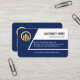 Overleaf, in a blue cover brought from the front, card details are on the left. At the top is the gold logo followed by your prestigious name and the contact details.